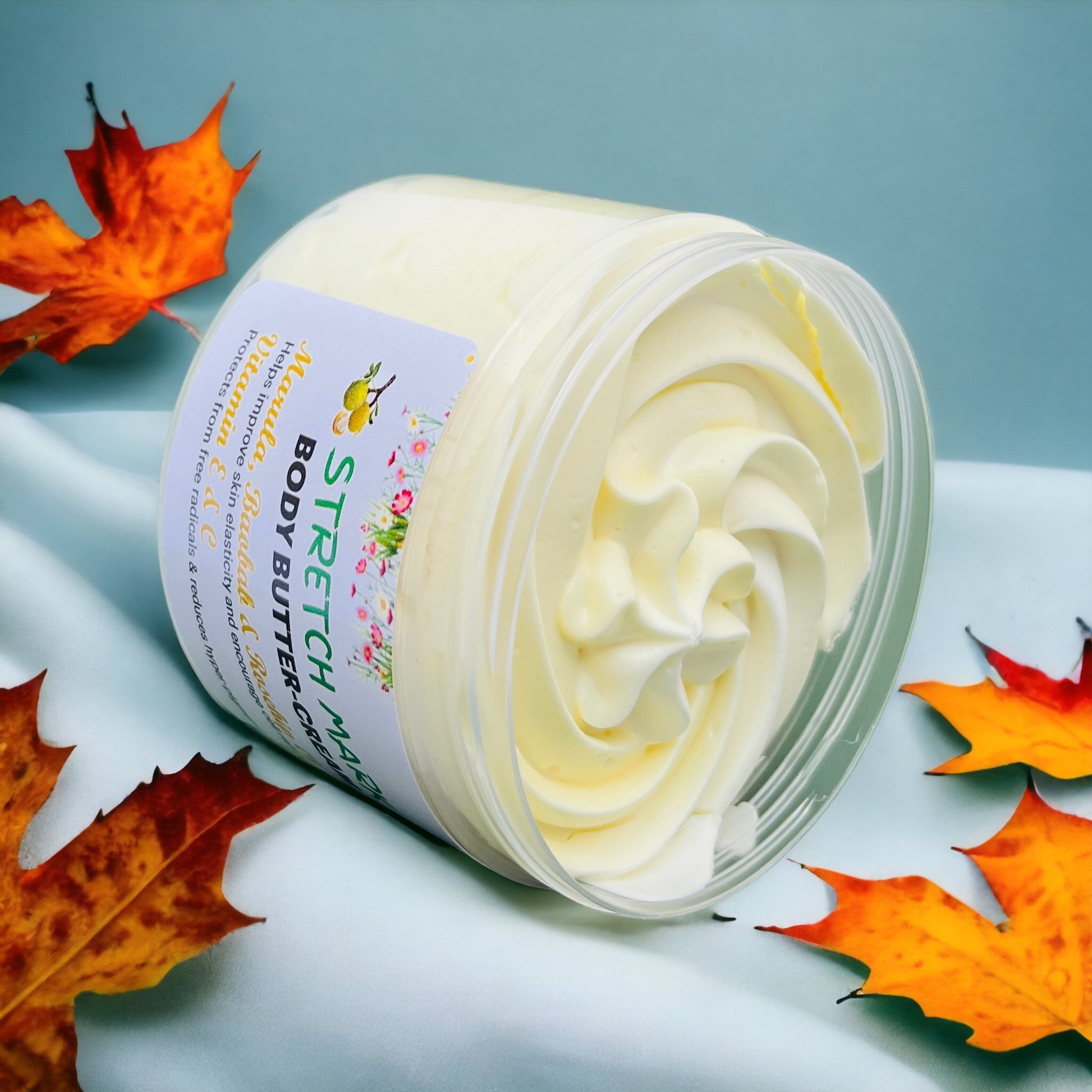 Infused with Marula, Baobab, Rosehip, and Raspberry Seed Oil, this buttercream helps improve elasticity, reduce scarring, and support collagen production. Whether you’re pregnant, postpartum, healing from rapid body changes, or simply want smoother skin, this cream cocoons you in botanical strength and softness.